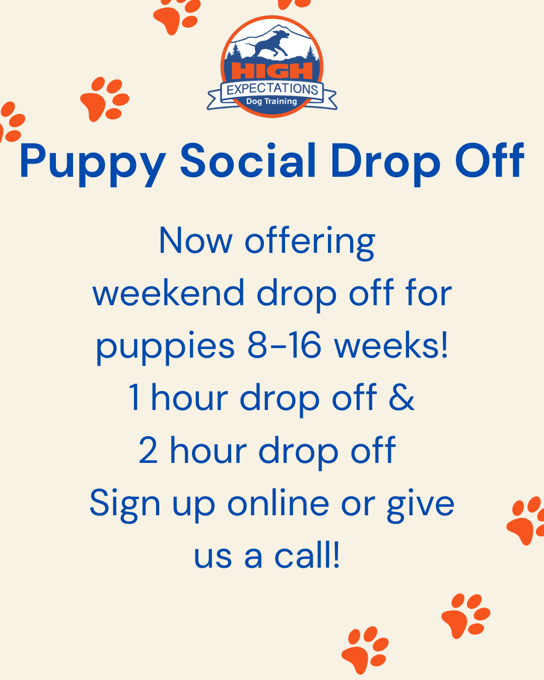 Puppy Social Drop off for Puppies 8-16 weeks