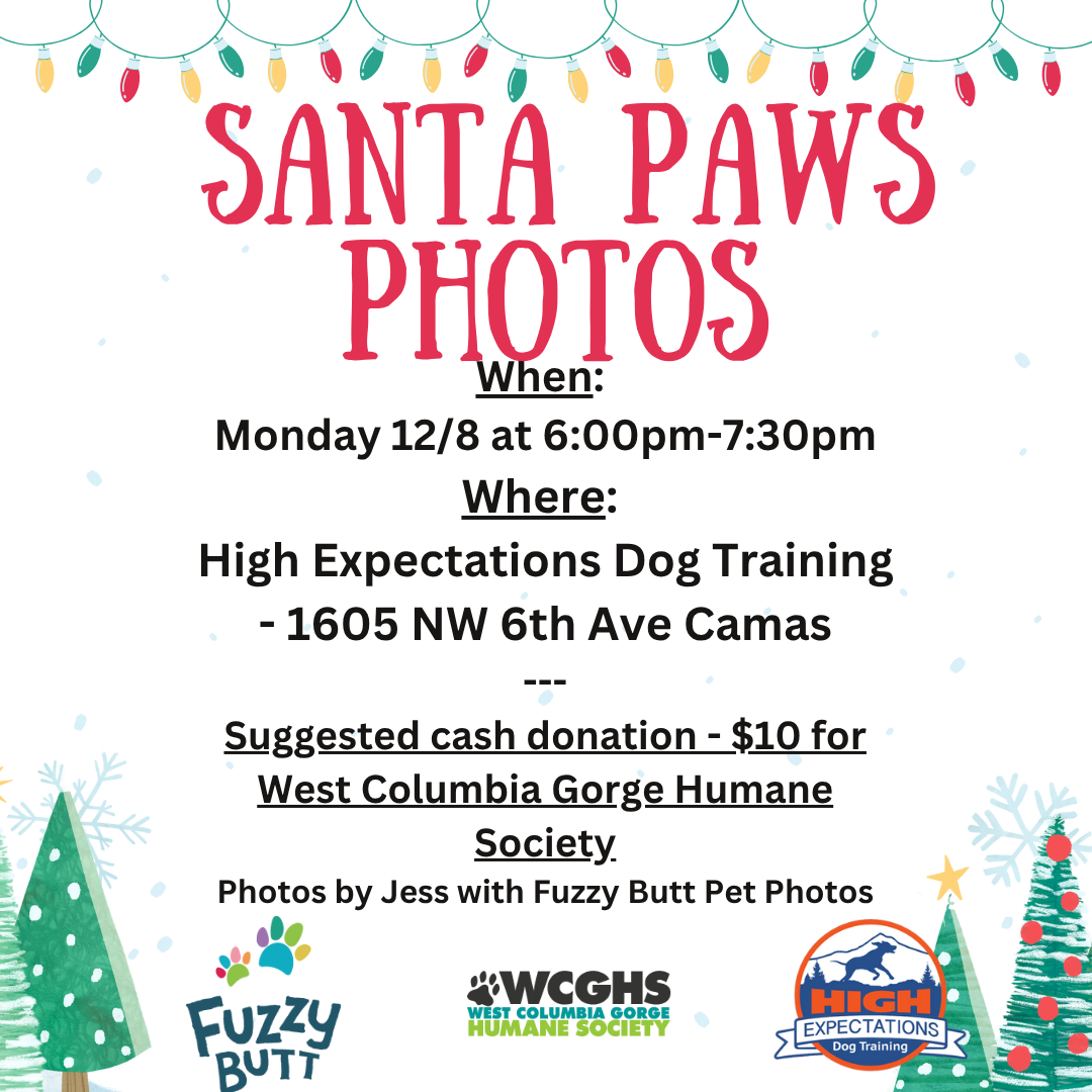 We hope you can join us for our Santa Paw Photos this year on Monday 12/8 at 6:00pm-7:30pm. We will have Jess from Fuzzy Butt Pet Photos working her magic behind the camera to get you a cute holiday picture of your pet. This is a first come first serve event so please make sure […]
